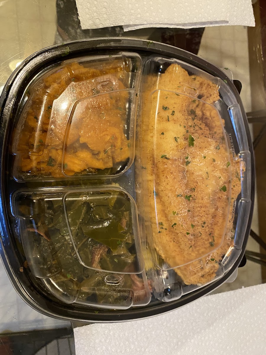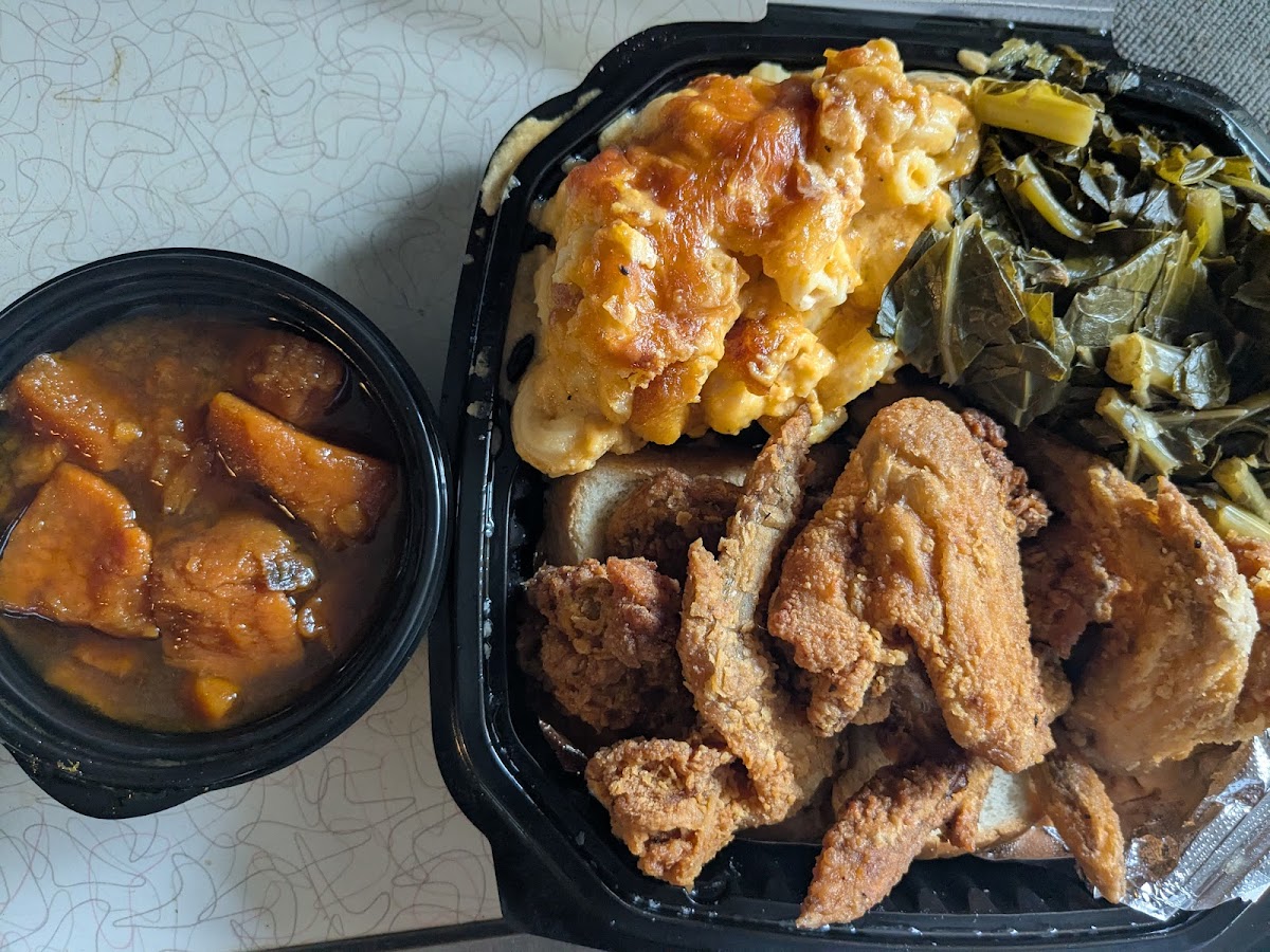 One of the standout dishes at Stuffedenuff is the Collard Greens with Smoked Turkey, a Southern classic that packs both flavor and heartiness. Paired with the smoky turkey, the greens are perfectly cooked, tender, and seasoned just right. It's a dish that reminds you of home-cooked meals made with love and attention to detail. Another crowd favorite is the Catfish Dinner with Greens and Sweet Potatoes. The crispy, perfectly fried catfish is complemented by the rich, earthy flavor of the collard greens and the sweet, comforting taste of the sweet potatoes. The balance of textures and flavors makes this meal a satisfying choice for anyone looking to indulge in Southern comfort food.